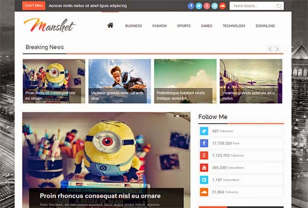 Manshet is a blogger template with responsive layout. This theme perfect for Search Engine Optimization. Its High User Friendly Blogger Template. Its perfect for News, Magazine or Reviews websites. Its comes with unlimited colors changing options.